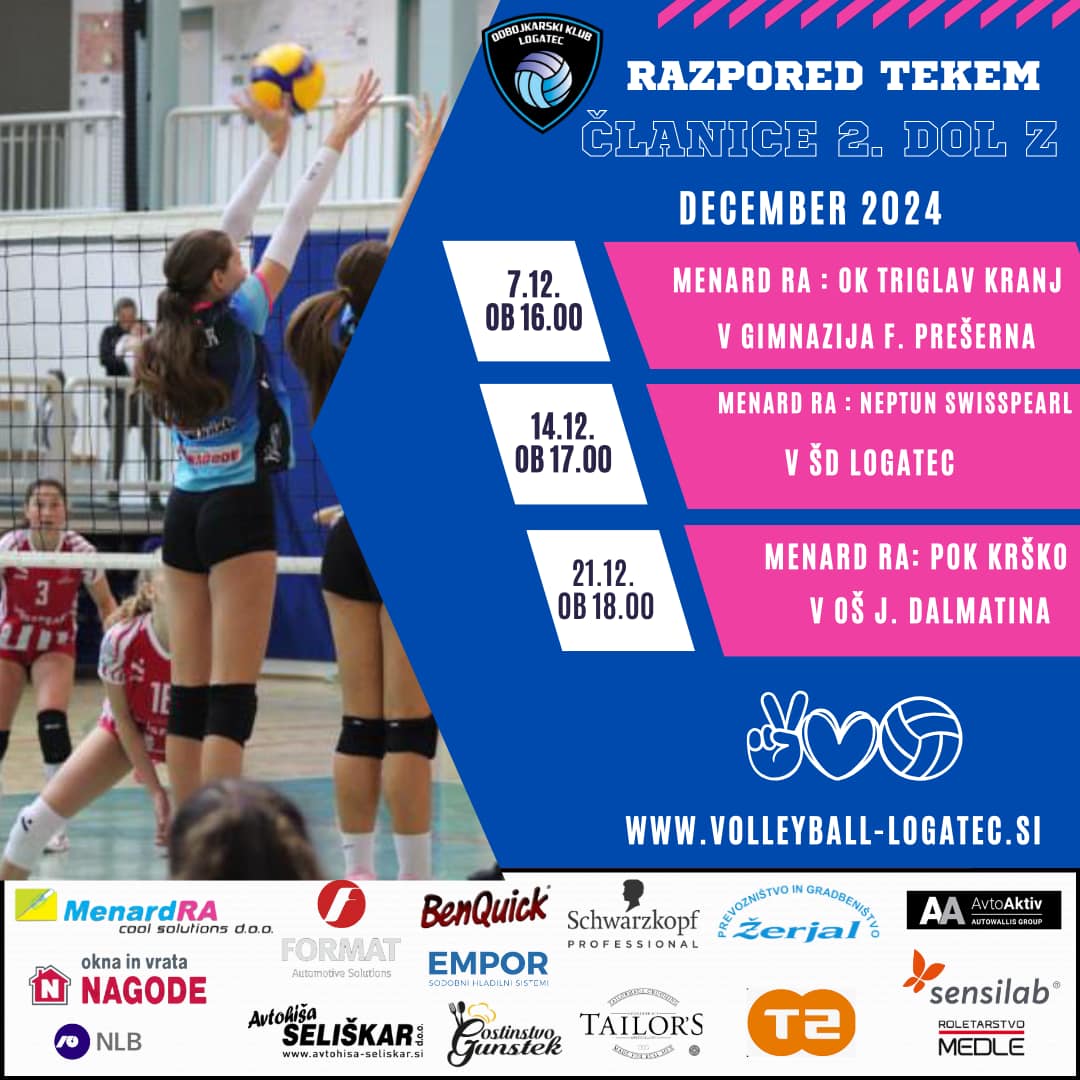 Prilagamo seznam članskih tekem ekipe Menard RA, v 2. DOL, za mesec december 2024
